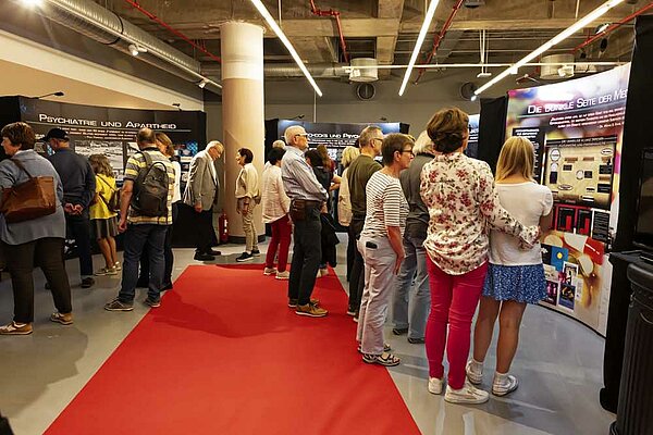 Auf 14 großflächigen Dokumentationstafeln und an acht Videostationen erleben Besucher eine aufrüttelnde Chronologie: Von den Anfängen der Psychiatrie mit Sturzbädern und Drehstühlen, Psychiatern als Wegbereitern der Rassenhygiene, psychiatrischer Zwangssterilisation und Ermordung zehntausender Psychiatriepatienten in Gaskammern – bis zur heutigen Praxis in Anstalten: mit Elektroschocks, Zwangsmedikation, Fixierungen und neurotoxischen Dauermedikamenten, auch an Kindern in Deutschland.